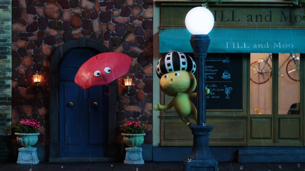 Fill lives in ruin alone. Its face appears somehow sad and lonely. One day, a projector shows up in front with the rattling sound of the film roll moving, it screens old film scenes. Suddenly Moo shows up, and calls Fill into the screen. Board the locomotive and let their journey begins!